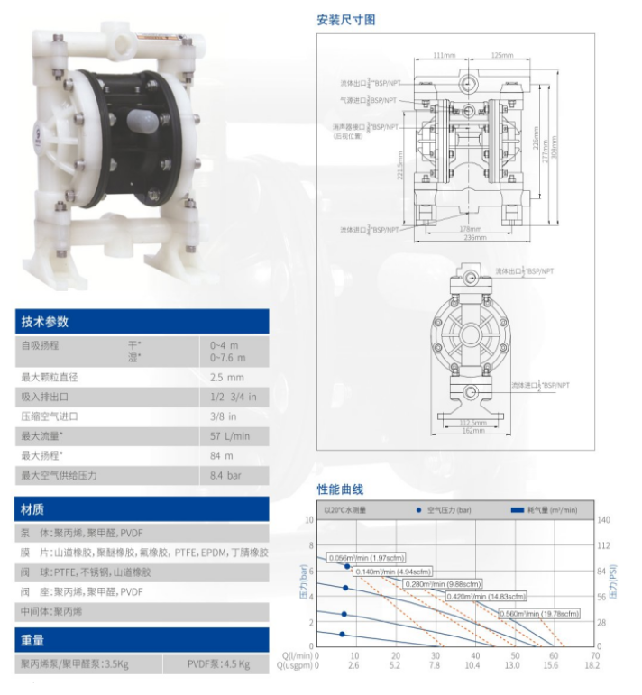PP塑料隔膜泵即能抽送流動(dòng)的液體,又能輸送一些不易流動(dòng)的介質(zhì),具有自吸泵、潛水泵、屏蔽泵、泥漿泵和雜質(zhì)泵等輸送機(jī)械的許多優(yōu)點(diǎn)。