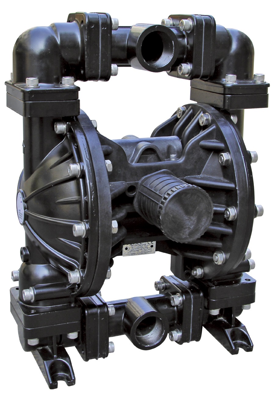 氣動(dòng)雙隔膜泵采用壓縮空氣、氮?dú)饣蛱烊粴庾鳛閯?dòng)力。主定向(氣動(dòng))控制閥將壓縮空氣分配至氣體腔室,向隔膜的內(nèi)表面上施加均勻壓力。同時(shí)排出的氣體從泵另一側(cè)后方通過(guò)氣閥組件導(dǎo)向端口排出。 氣動(dòng)雙隔膜泵內(nèi)腔氣體壓力超過(guò)液體腔壓力,隔膜連桿來(lái)回移動(dòng),在一側(cè)進(jìn)行排放,在另一側(cè)進(jìn)行吸入。排放和吸入液體的方向由止回閥(球閥或片狀閥)的方向控制。吸入行程使泵執(zhí)行吸入。吸入行程可降低艙室壓力,增加腔室體積。從而生成大氣壓力壓差,推動(dòng)液體經(jīng)過(guò)吸入管道,穿過(guò)吸入側(cè)止回閥,流入外部液體腔。吸入側(cè)行程還可啟動(dòng)泵的往復(fù)(移位、行程或循環(huán))運(yùn)動(dòng)。氣動(dòng)雙隔膜泵通過(guò)行程機(jī)械拉動(dòng)吸入隔膜的移動(dòng)氣動(dòng)雙隔膜泵的內(nèi)板與對(duì)準(zhǔn)的驅(qū)動(dòng)柱塞發(fā)生接觸,移動(dòng)導(dǎo)向閥芯。導(dǎo)向閥激活后,便向主定向氣閥的另一端發(fā)出壓力信號(hào),氣動(dòng)雙隔膜泵使壓縮空氣方向改向內(nèi)部腔室的另一側(cè)如此反復(fù)運(yùn)動(dòng)完成介質(zhì)的連續(xù)輸送。